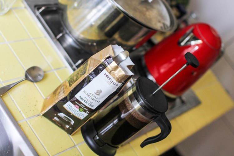 Jag erkänner här och nu, även om jag helst inte vill vidkännas det hela fullt ut, att så här på morgonen dricker jag medhavd pressokaffe från Sverige. Italienskt kaffe är det bästa, men en liten espresso på morgonen eller en kaffe lungo är alldeles för lite för den här Mamman. Jag behöver ju hinkvis med kaffe för att komma igång.