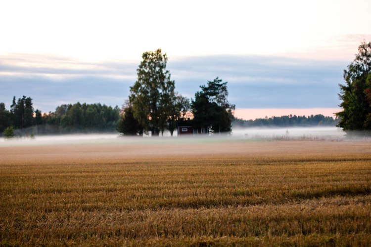 Det luktar gudomligt gott. Och nu kommer landskapet bakom rågen fram igen där borta i horisonten. Dimman har legat som långa slöjor över åkrarna varje kväll nu senaste veckan. Det är lite kyligare, lite mer färgstarkt, lite högre luft.