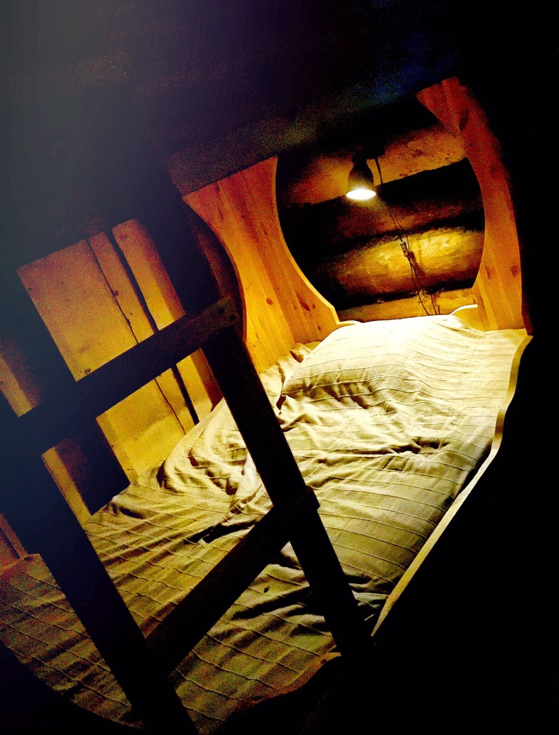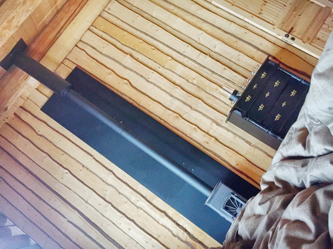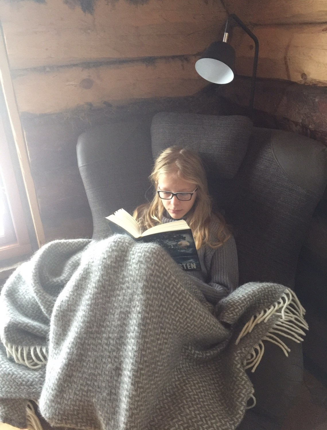 I november, då med betydligt mer snö här än vad vi har nu, fick vi äntligen till belysningen med det 12 voltsystem detta hus numera kan erbjuda. Jag fick hit mitt ”Harry-Potter-Narnia” klädskåp som jag är så nöjd med! Och den fåtölj i hörnet där jag sitter nu.