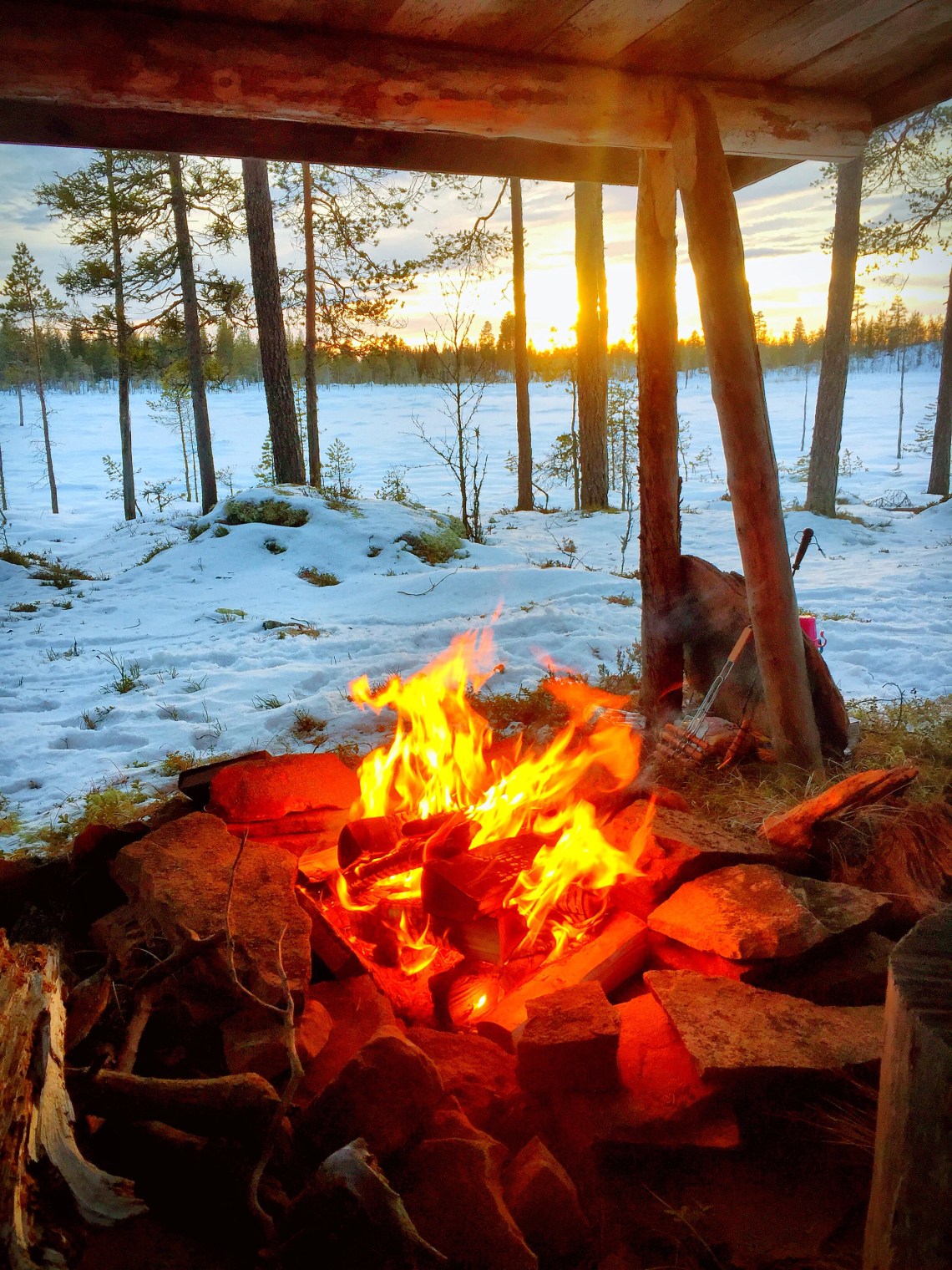 Nu har vi firat vår första jul här. Inte slitit allt för ont. Bara träffat tomten, åkt skoter, grillat en del korv och levt vildmarksliv.