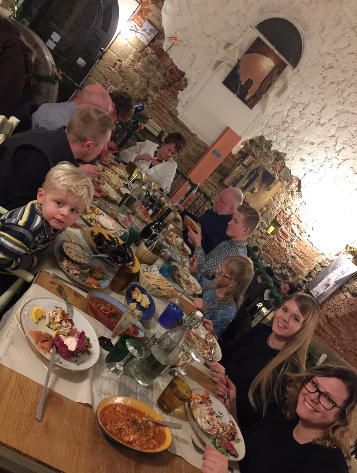 Nyåret för ett år sedan spenderades i vår dröm i Italien. Min pappa fyllde sextio och jag fick någon vecka tillsammans med honom och alla mina syskon. Ni får hålla till godo med mobilbilder. Datorn har inget krut i sig och jag orkar vare sig lyssna till elverket eller stå och blogga i tvättrummet (där vårt enda 220 uttag finns).