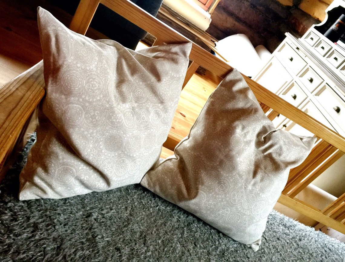 I maj hade vi björnbesök på yttertrappan och vi hade kommit till den punkten i bygget där jag numera kan känna att jag har ett större deltagande än som barnpassare, tyckare och pekpinne. Nämligen till kuddpuffandet och mattfranssträckare…