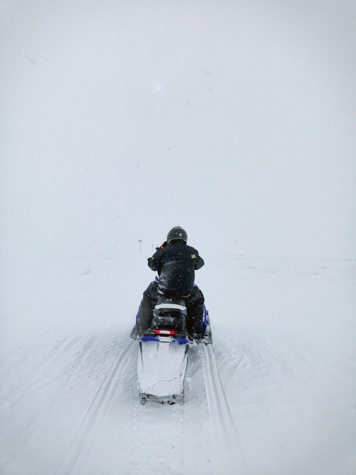 Min skoter står parkerad framför hotellets bar idag. Den ville ha en paus, trots finväder, till skillnad från fjällvädret under gårdagen. Den inväntar gamla M’s vrålåk som är ute på vift i alldeles för tuff terräng för min smak idag. Min man hittade ett gäng från Hälsingland, Ljusdal och Hybo faktiskt, att åka med idag. Själv är jag oerhört tacksam för en softardag. Fått en del jobb gjort, tagit en tur till fots i finvädret och nu satt mig i ett av hotellets mysiga lounger med min bok om spetälskesjukhuset i Järvsö (som egentligen är en ungdomsbok av Camilla Lagerqvist, tänkt till lilla M).