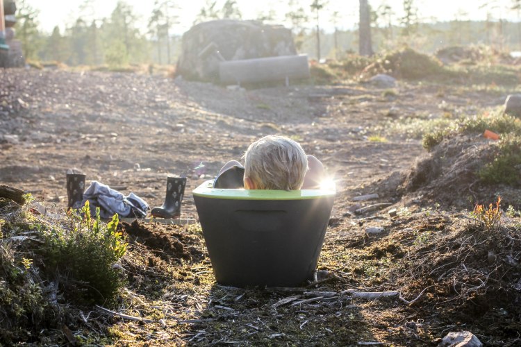 Den gamla babybaljan vi av någon anledning har kvar i våra gömmor kommer till användning igen. Med en perfekt blandning av kokande vatten från spisen och kallt vatten direkt från brunnen, lite duschtvål från L:A Bruket och du har ett alldeles eget vildmarksspa.