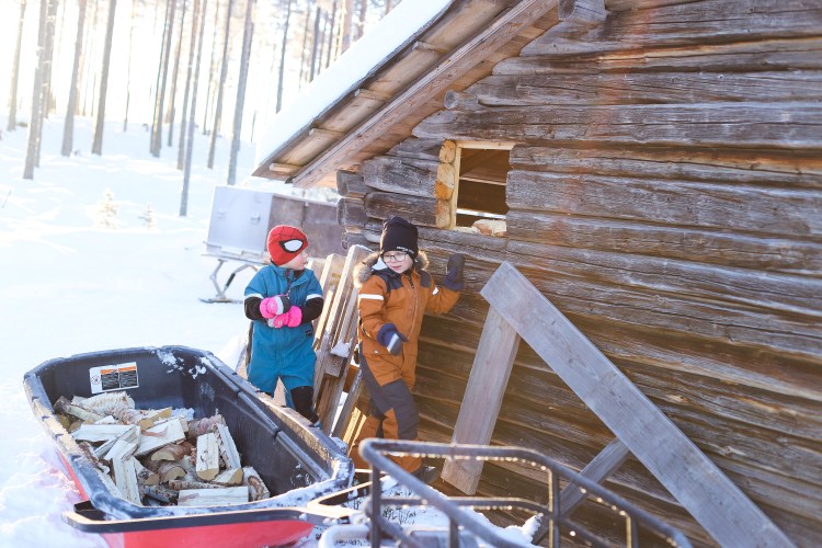 Vi var till Särna under gårdagen och köpte tre kubik ved. Vi brukar fylla på vinterförrådet under sensommaren eller hösten, men i år hanns det inte riktigt med. Så idag har vi fått in två av dessa kubik med skotrar och släp över sjön. Smågrabbarna har kört själva på sina miniskotrar och lastat ved så svetten rann.