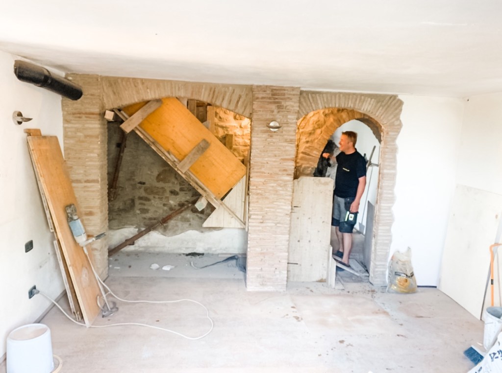 Det som är viktigt att tänka på är att när sådana här jobb utförs så behöver man veta att hantverkaren kan ta med sig de högar av sten och murbruk som blir över. I Italien finns inte soptippar med ett system som det svenska. Det är ganska strikta restriktioner hur avfall av detta slag ska hanteras. Ibland kanske lite för omständigt vilket gör att det bara slängs helt oansvarigt var som helst. Vår hantverkare är en riktig sådan som tar med sig allt skräp efter sig.