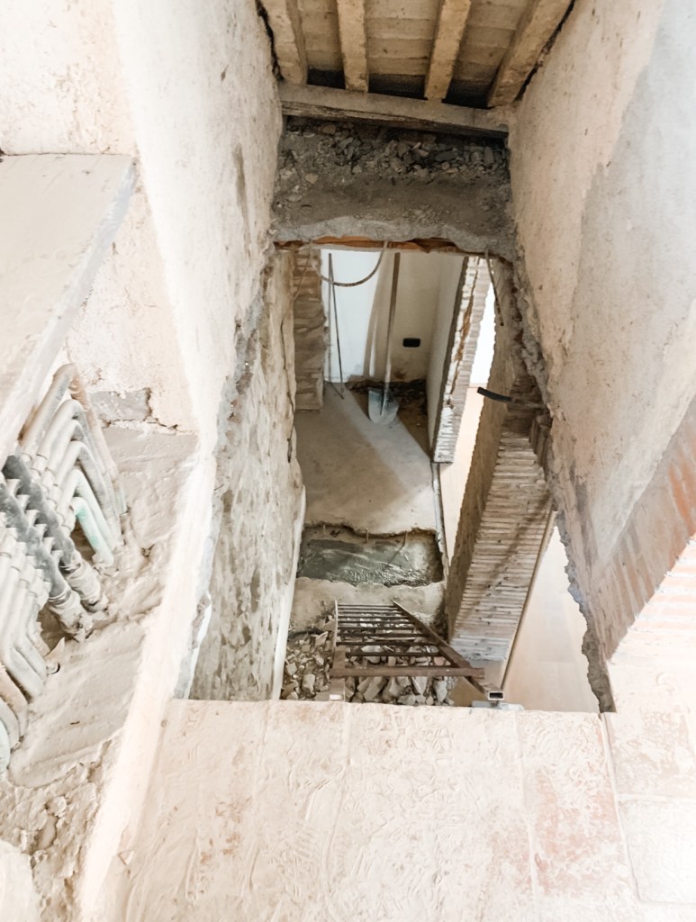 Det går inte ens att beskriva stendammet i huset när hålet mellan våningarna togs upp. Men vi gjorde det först av allt innan vi tog tag i något annat, så industridammsugaren kom väl till pass ännu en gång skulle man väl kunna säga.
