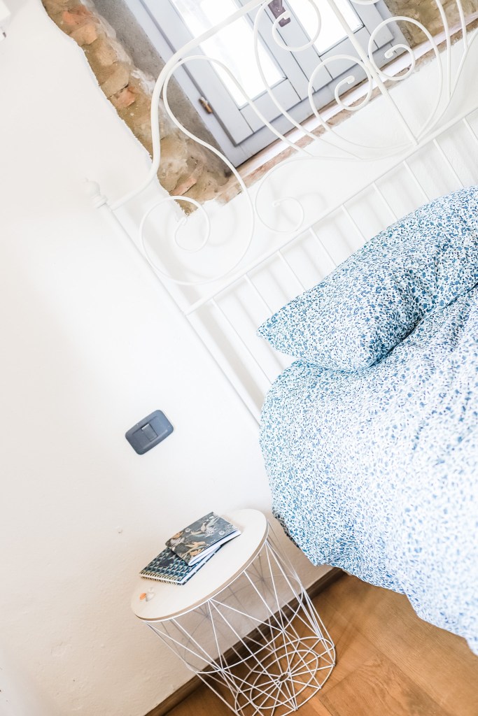 Garderoberna bort och den mörka träsängen. In med lite skirare alternativ från Ikea i form av säng och byrå och en ny matta och nattygsbord från Maisons du Monde, så kan tonåringen i familjen som helst inte reser och som trivs bäst hemma i Sverige ändå ibland antyda att hon kan drömma om sitt rum i Vetulonia. Ibland i alla fall.