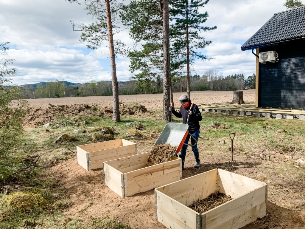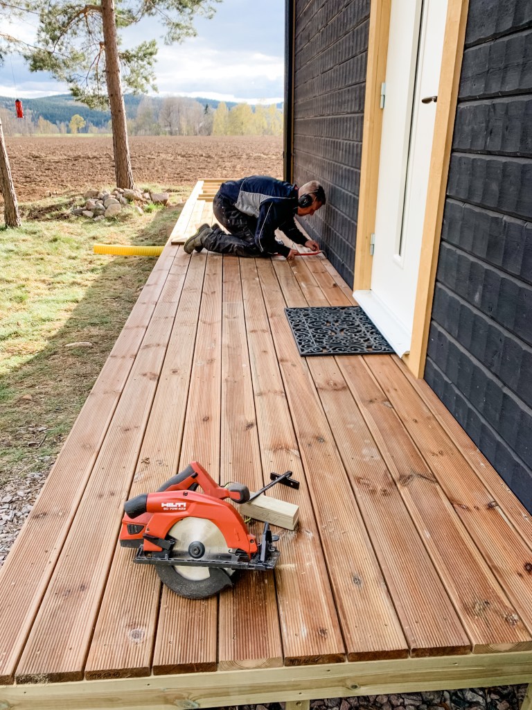 Mormors hus börjar verkligen få sin inramning. Hennes altan börjar bli färdig och hon har så smått börjat skapa sin skogsträdgård.