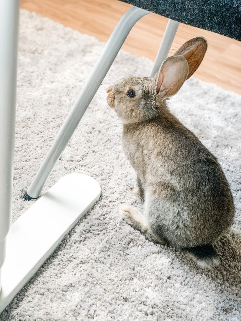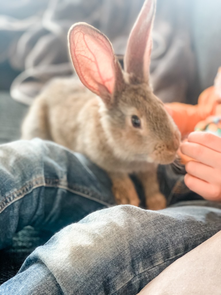 Så nu är familjen med kanin. Han ska bo utomhus, men kommer att vara med oss under dagarna där vi för stunden befinner oss och naturligtvis i en lämplig miljö för en kanin.