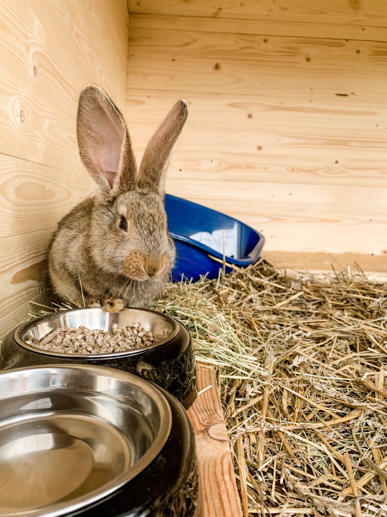 Under somrarna får han bli inomhuskanin i Toscana (som svensk belgisk jätte i Italien blir nog värmen lite för mycket utomhus, under soliga dagar).