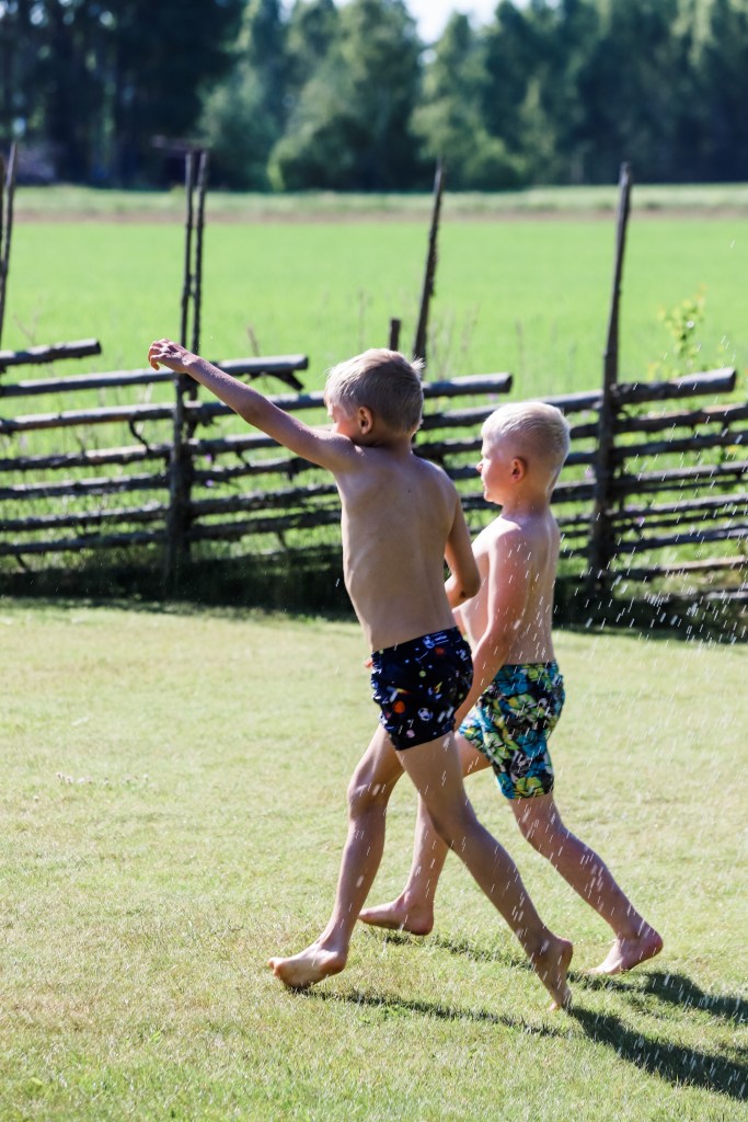 I väntan på en förhoppningsvis asfalterad vandringsled inom en knapp månad där uppe i Lappland ägnar vi dagarna åt vattenlek, bokläsning och glassätning här hemma på baksidan.