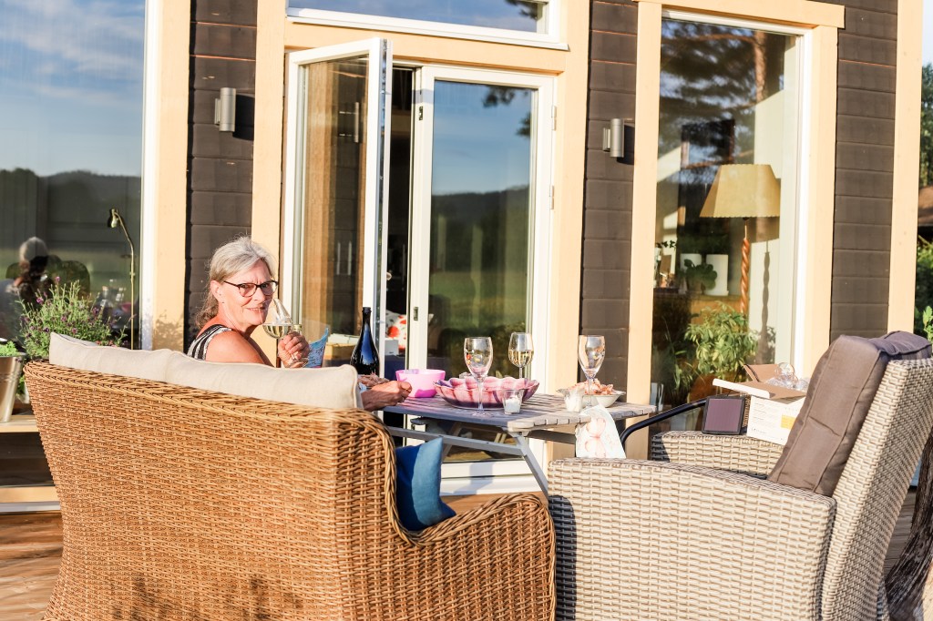 Jag tröstar mig en aning med att jag faktiskt äger huset och att jag kan bjuda in mig på räkor och bubbel nästan när jag vill.