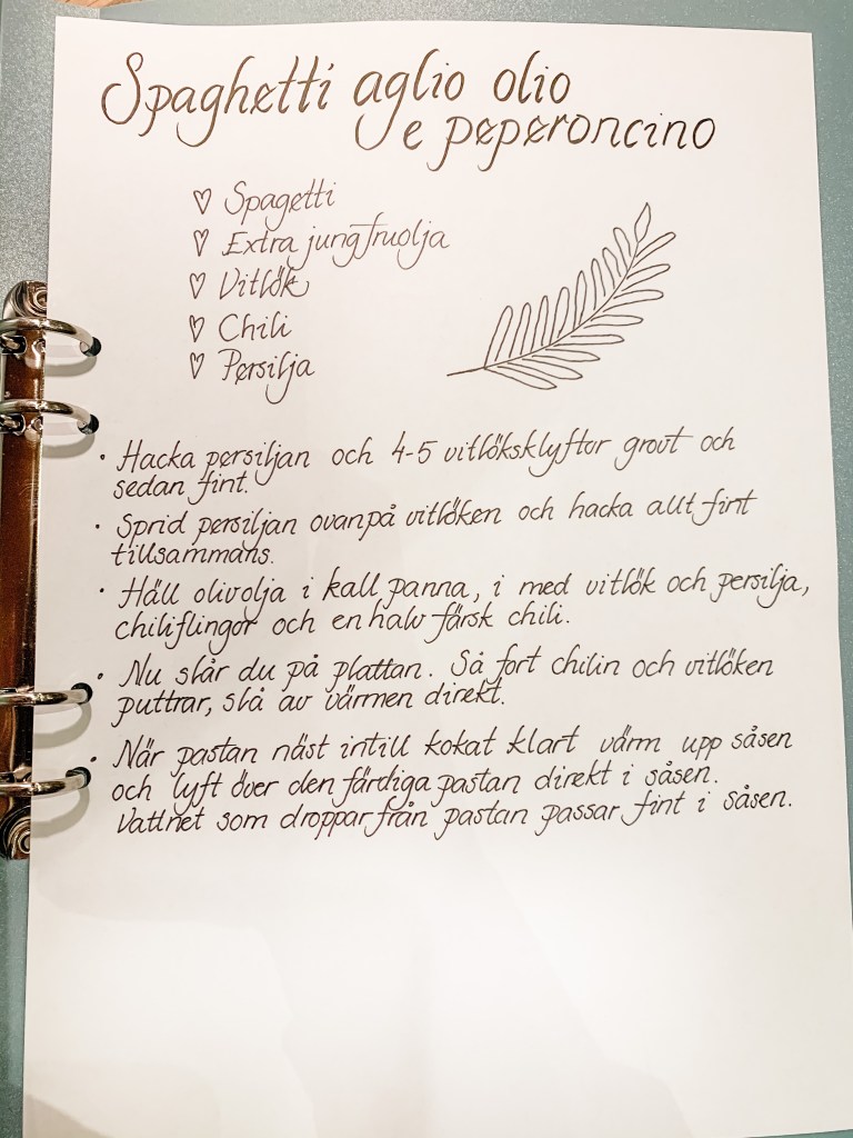 Vi har ätit Spaghetti aglio olio e peperoncino två gånger den här veckan. Så gott och väldigt enkelt. Fem ingredienser (eller 7 st om man räknar med saltet i pastavattnet och vattnet i sig). Gör man det?