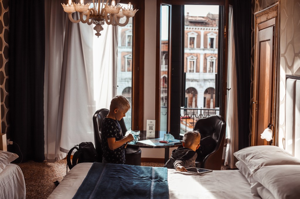 Vi bor på Locanda Leon Bianco. Med the Grand Canale precis nedanför rumsfönstren. Vi blev uppgraderade utan någon extra kostnad som kompensation för att restaurangerna nu behöver stänga vid klockan 18. Vi visste ju redan att det var så och vi är svenskar. Middag klockan 17. Alltså gör det oss absolut ingenting. Så för oss passar det alldeles utmärkt. Nu har de flesta restaurangerna istället öppet hela dagen istället för att stänga vid tretiden, för att sedan öppna på kvällen igen.