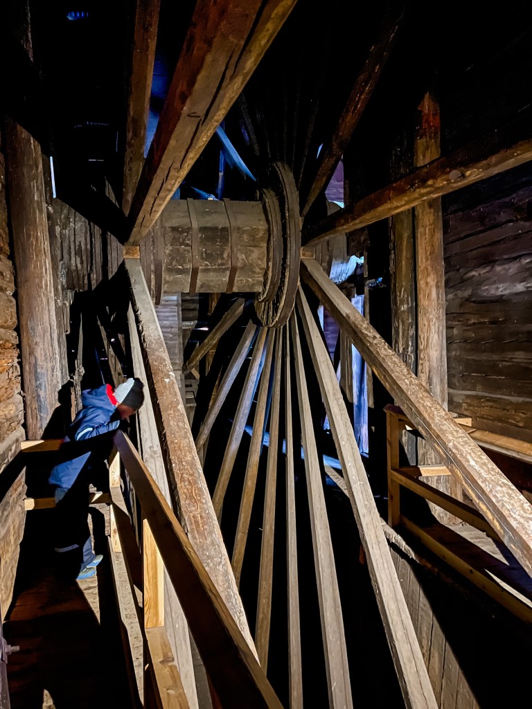 Den äldre av bröderna gillar väl också att klättra, men han intresserar sig mer för det byggnadstekniska och funktionen av varendaste byggnad vi passerade.