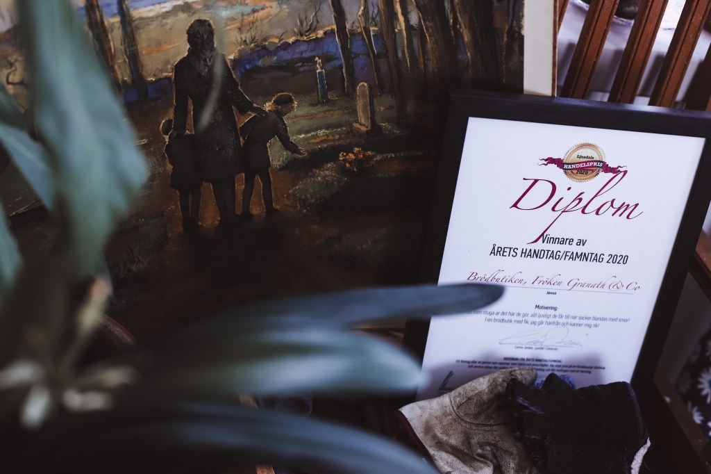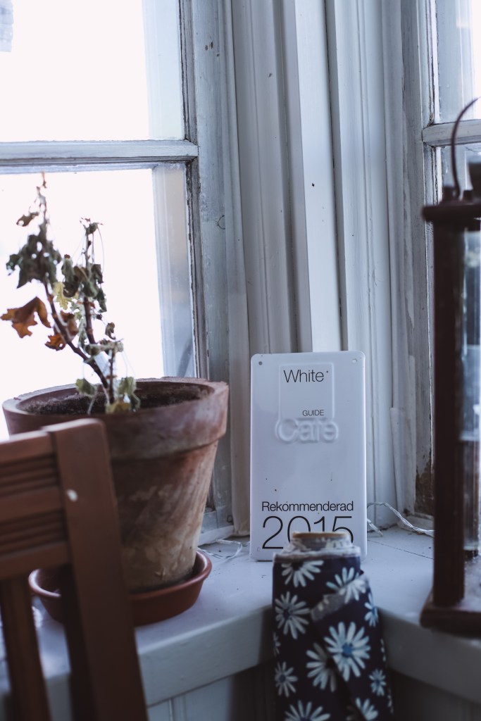 finns lite varstans i detta hus. Hon är ingen som stoltserar med dem. Husets ägarinna är en ödmjuk person som inte skräder sina ord i onödan. Så jag hjälper henne lite med det här. Caffär, Trädgårdscafé och nu Brödbutik. White Guide utmärkelser och handelsdiplom. Skyltar från förr bakom pelargoner i fönstret. Vad hon än tar sig an så älskar människor det hon gör.