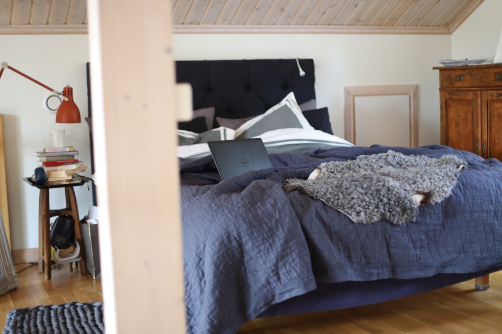 Jag jobbar från soffan och sängen idag. Det lilla jag nu tänker jobba. Jag tänker hur som helst inte sätta min fot på kontoret förrän tidigast imorgon.