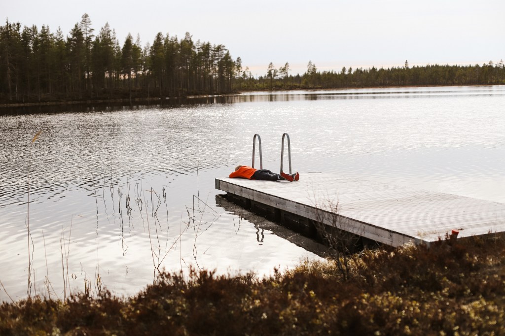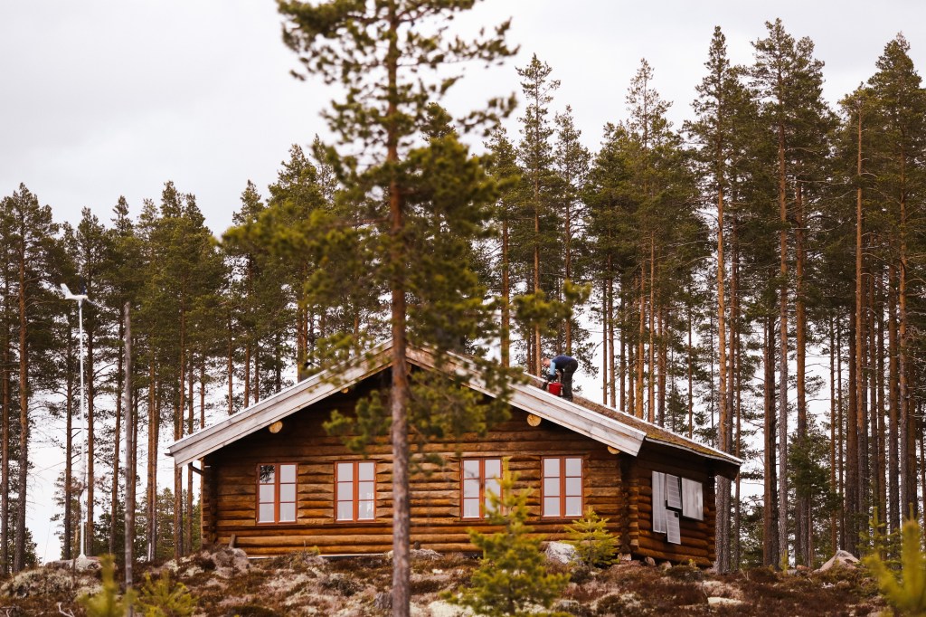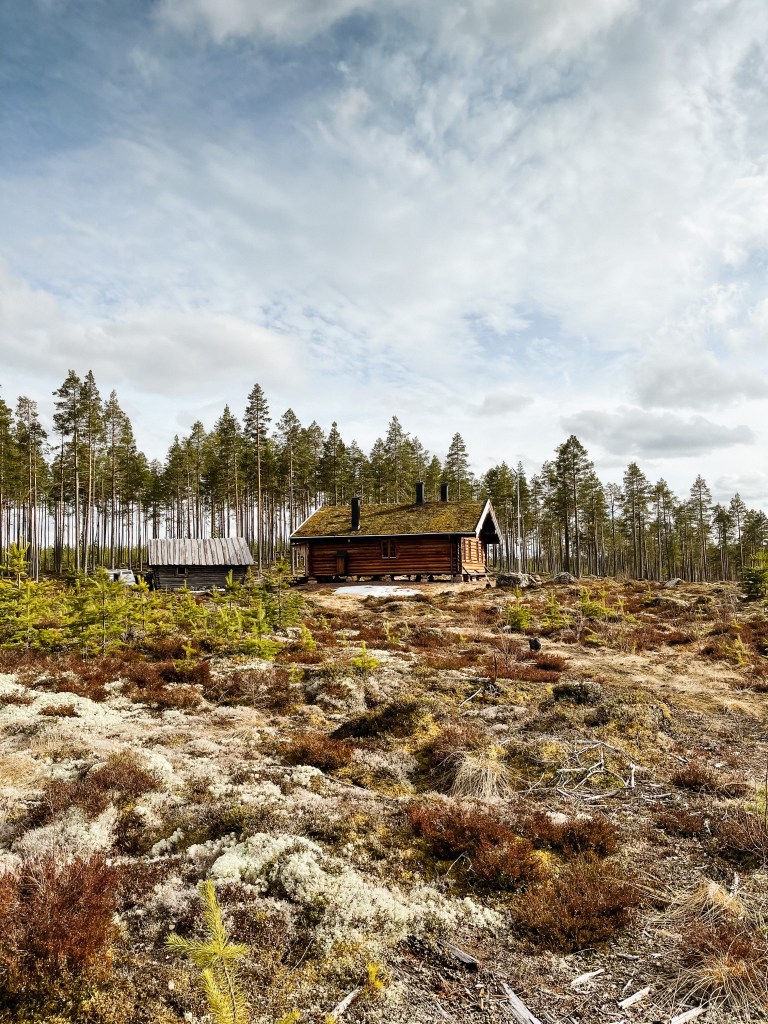 Så fortsätter jag ungefär tre kanske fyrahundra meter till rundar myren och så spricker himlen upp, solen värmer mig verkligen i ansiktet och stugan står där och bara väntar på mig. Jag har inte varit här på fyra månader, men det spelar ingen roll. Den behöver inget större underhåll. Lite mysigt fix bara när vi väl är här, om man vill, annars behövs det inte. Detta är för mig den lyxigaste platsen på jorden.