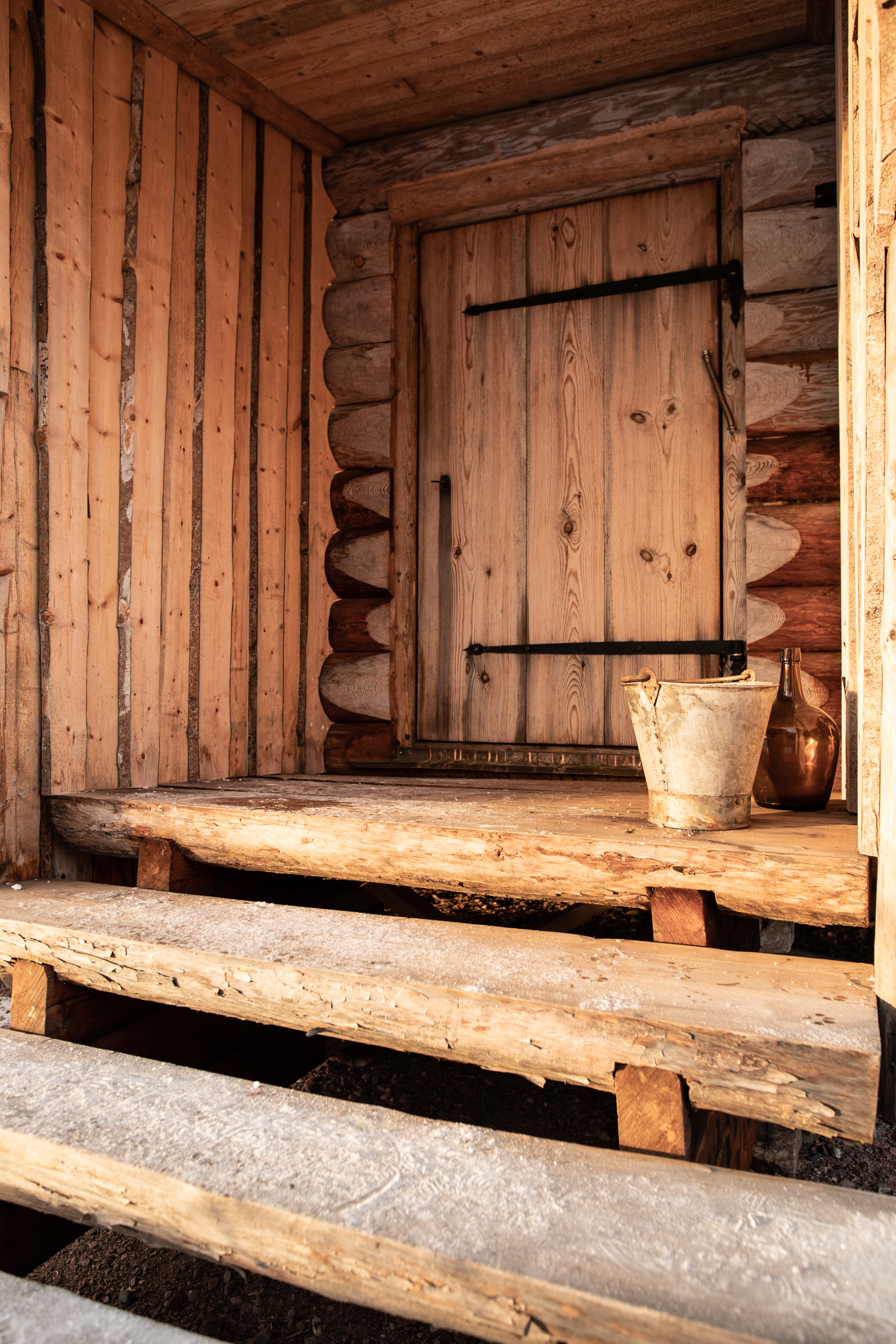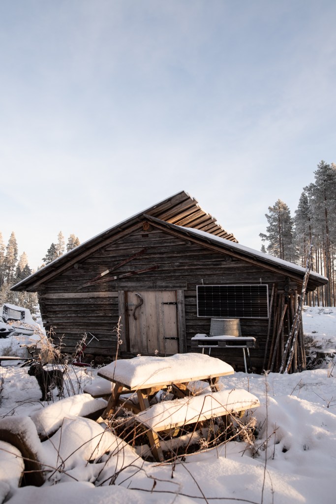 Detta lilla timmerhus är ett Blocketfynd. Eller fynd vet jag inte. Säger man det om allt man köper på Blocket? Den kommer från 1700-talet och har stått i Boden tills för fem år sedan då den fick monteras ner och landa här istället. Gediget hantverk från 300 år tillbaka.