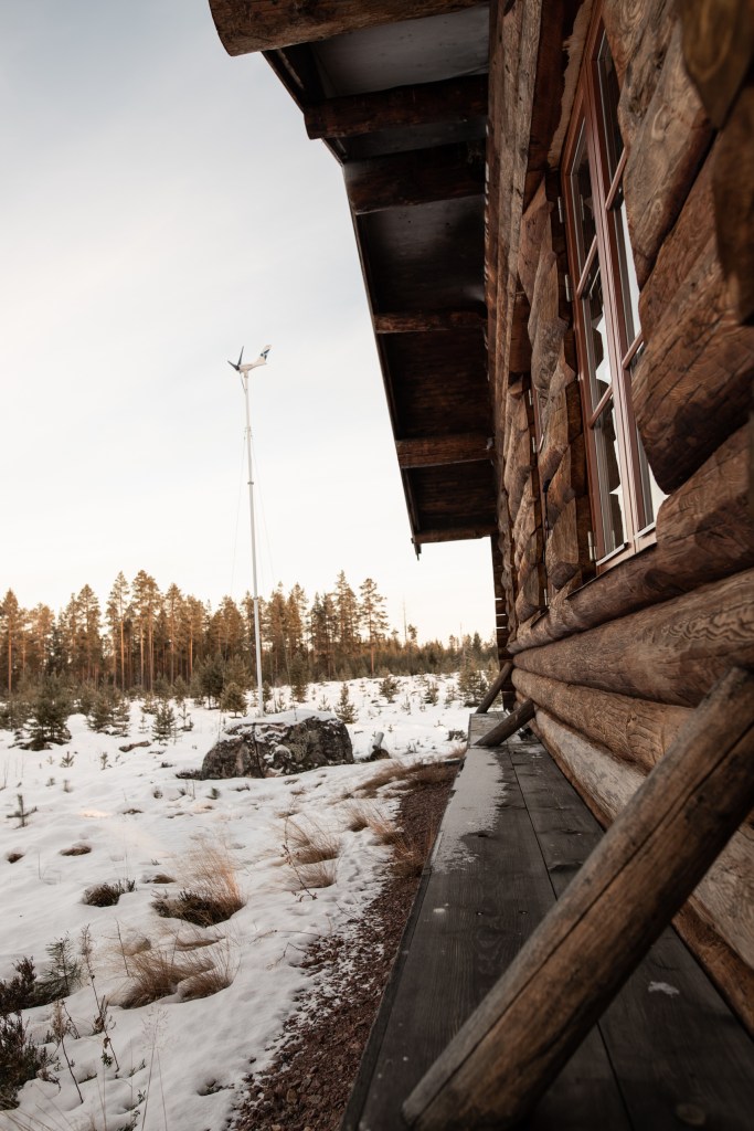 Jag skulle vilja beskriva det som att tystnaden är total. För det är så det känns. Men det stämmer ju inte riktigt. Ibland blåser det och då kan man höra vårt lilla vindkraftverk snurra på långsidan ner mot skön. Är vi här på vintern, som nu, så hör man ljudet från brasorna som sprakar och de små fläktarna på kaminerna som snurrar för att sprida värmen.