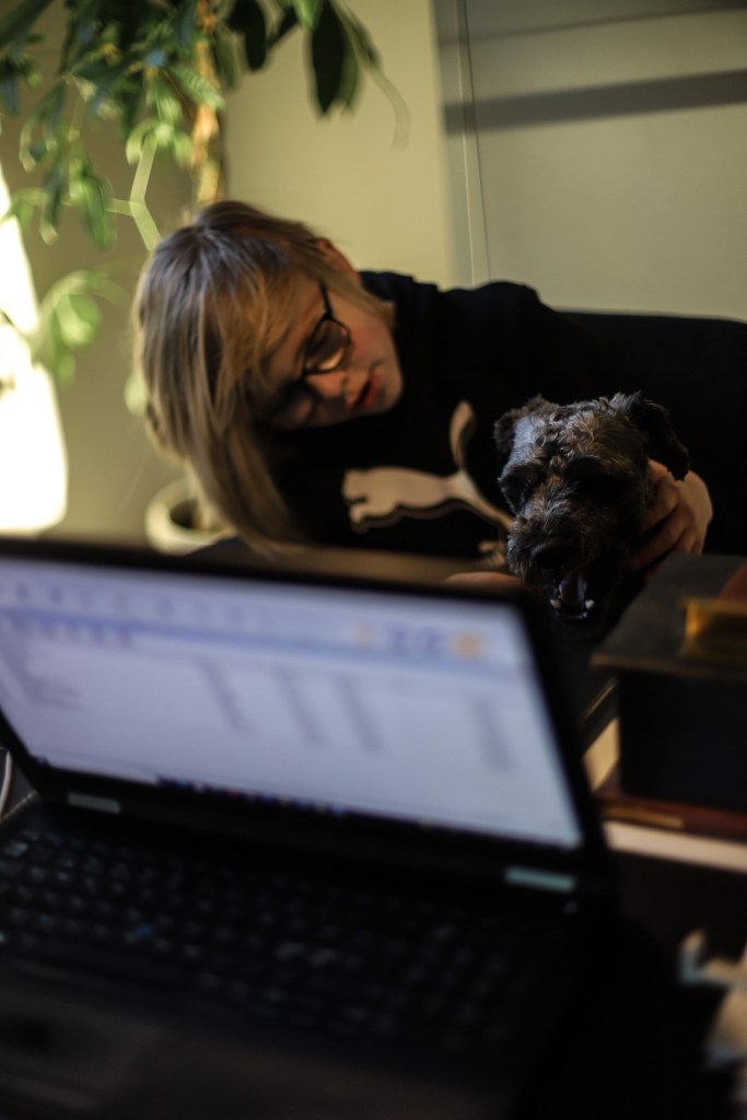 Så får även mina barn just nu. Vill de träffa sin mamma, så får de helt enkelt hänga med henne på kontoret. Det samma gäller för husdjuren.