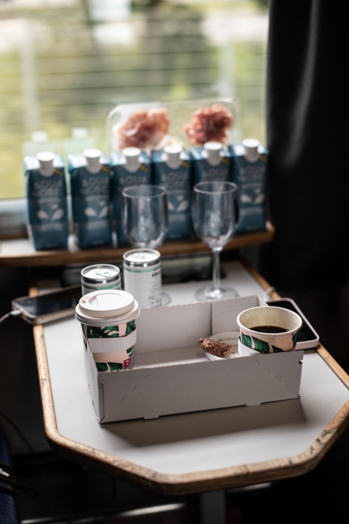 Traska några vagnar bort till restaurangvagnen när magen börjar kurra, bli serverad lite annan mat än vad vi beställt och att därefter få uppleva ett litet skådespel mellan tågpersonalen och ett par tillhörande Sveriges kulturelit som, då de fick beställa efter oss, hade ännu mindre valmöjligheter på måltider.
