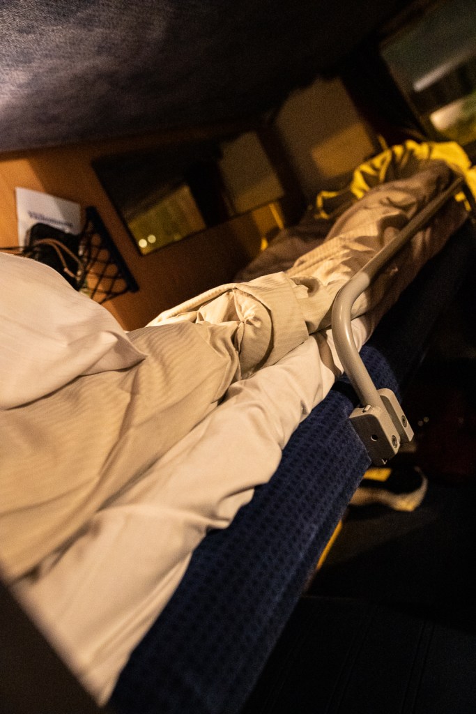 Mysa in sig igen i sin kupé, ikläda sig sin Polarn och Pyret pyjamas (mitt resesällskap nattlinne som nu torkat klart, hon hann inte torka tvätten innan avresa) duka upp lite snacks och dricka och fortsätta diskutera världsligheter tills man inte orkar mera, men med vetskapen om att vi kan ta vid berättelsen dagen efter och sedan dagen efter det och dagen efter det…